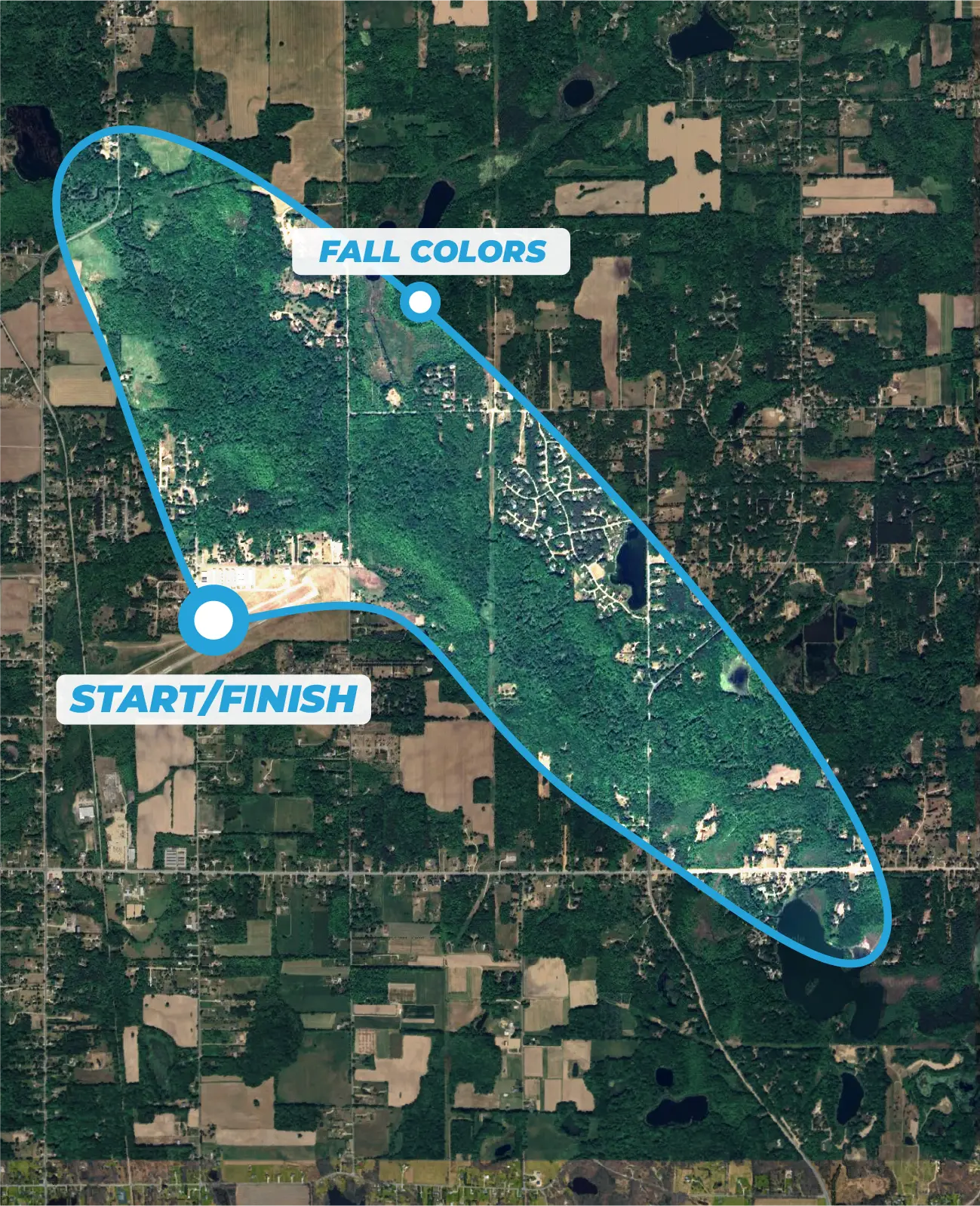 Prepare for the ultimate autumn adventure! Take in the stunning views of Randall, Morrison, and Craig Lake, all framed by the vibrant fall colors of Southern Michigan’s forests. This extended tour showcases everything Coldwater has to offer, making it the perfect way to experience the beauty of the season from above!