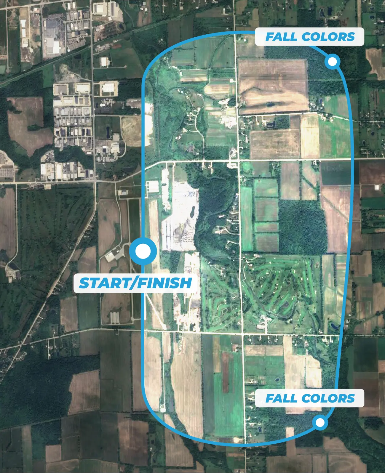 Elevate your fall adventure with our Ultimate Tour, which not only takes you over Downtown Romeo but also includes a breathtaking flight over Blake’s Orchard. Soar over 1,000 feet above vibrant fall foliage, historic landmarks, and the picturesque orchard, offering unobstructed views of the stunning autumn landscape. This extended tour guarantees a one-of-a-kind perspective on the beauty of the season, making it an unforgettable experience!