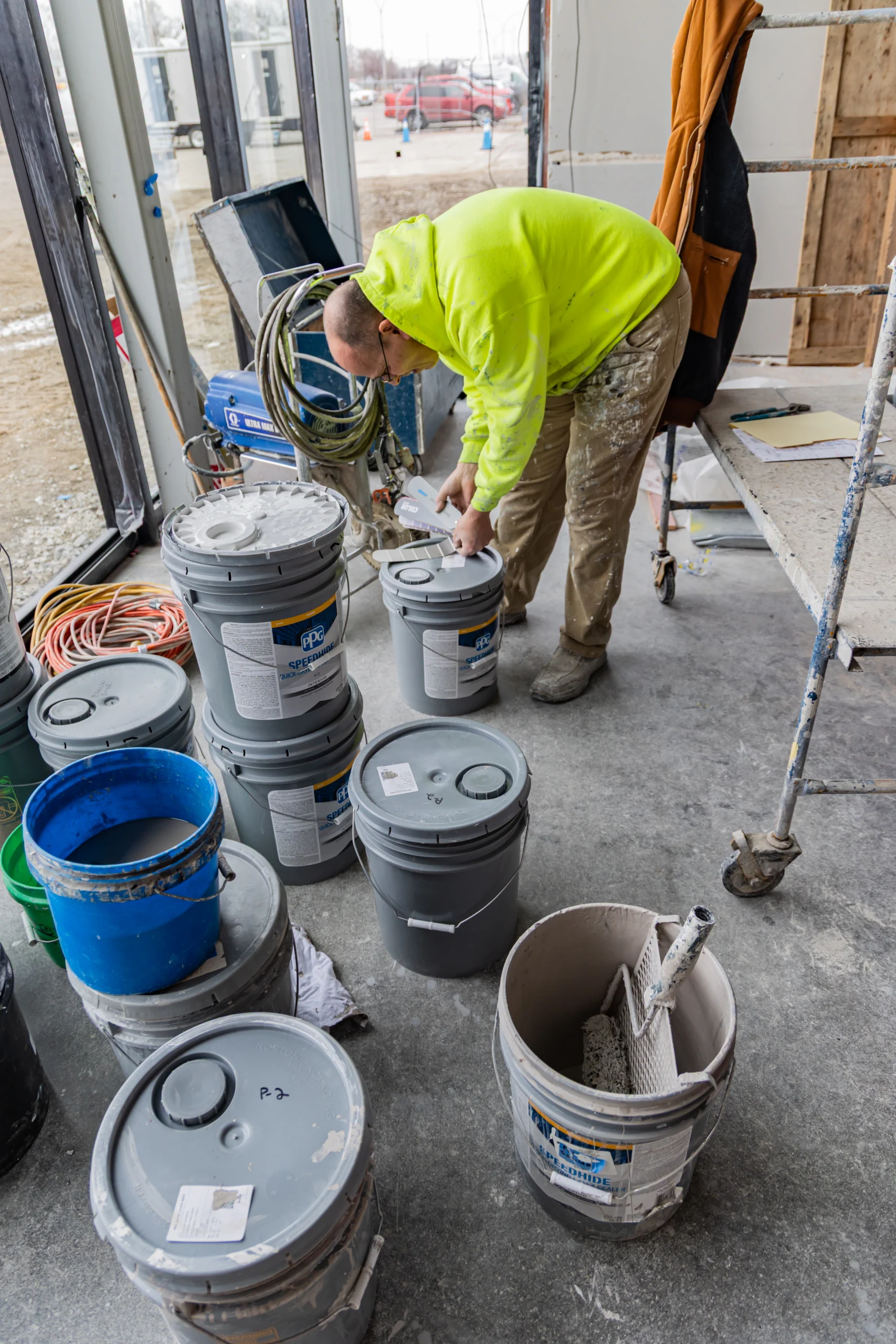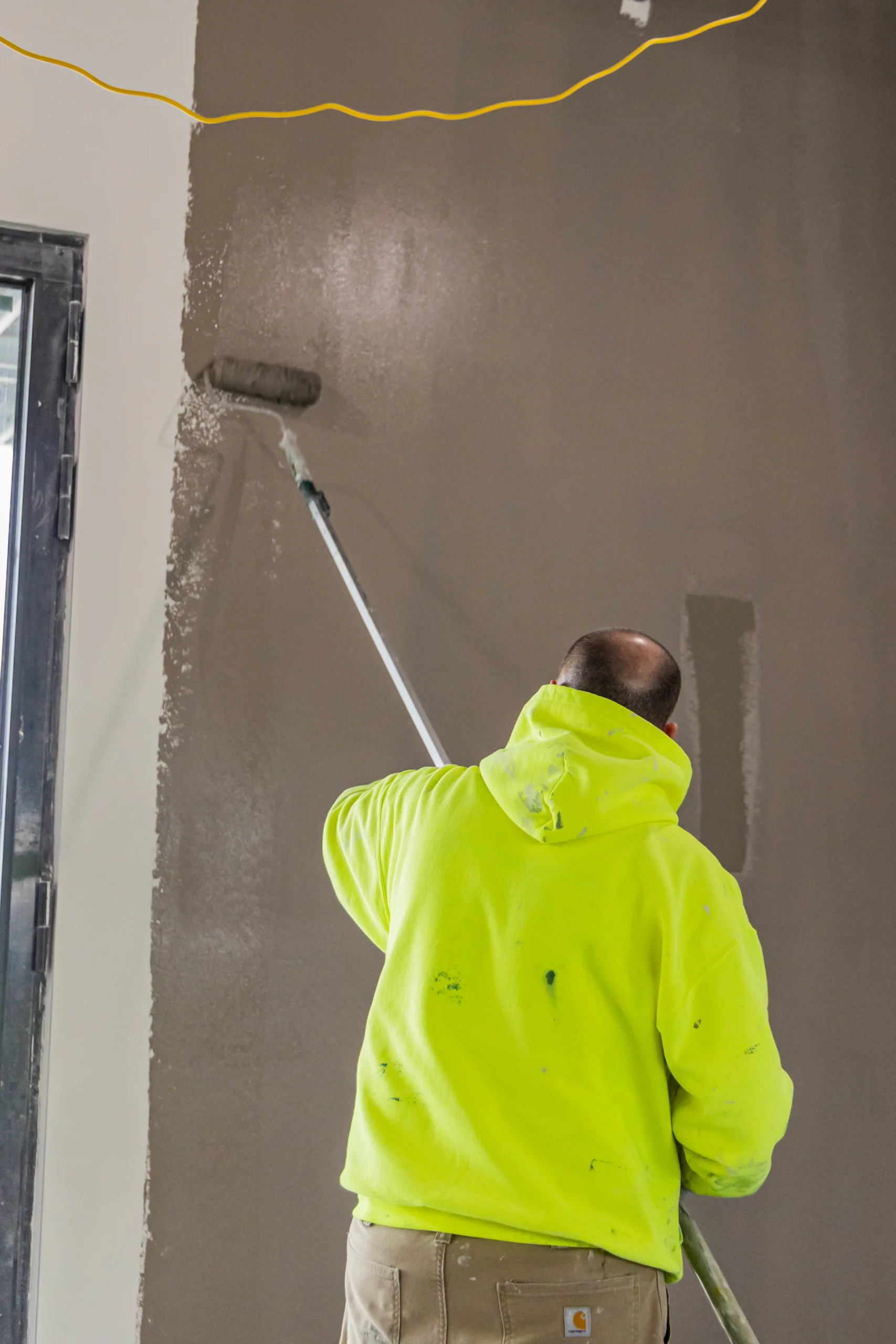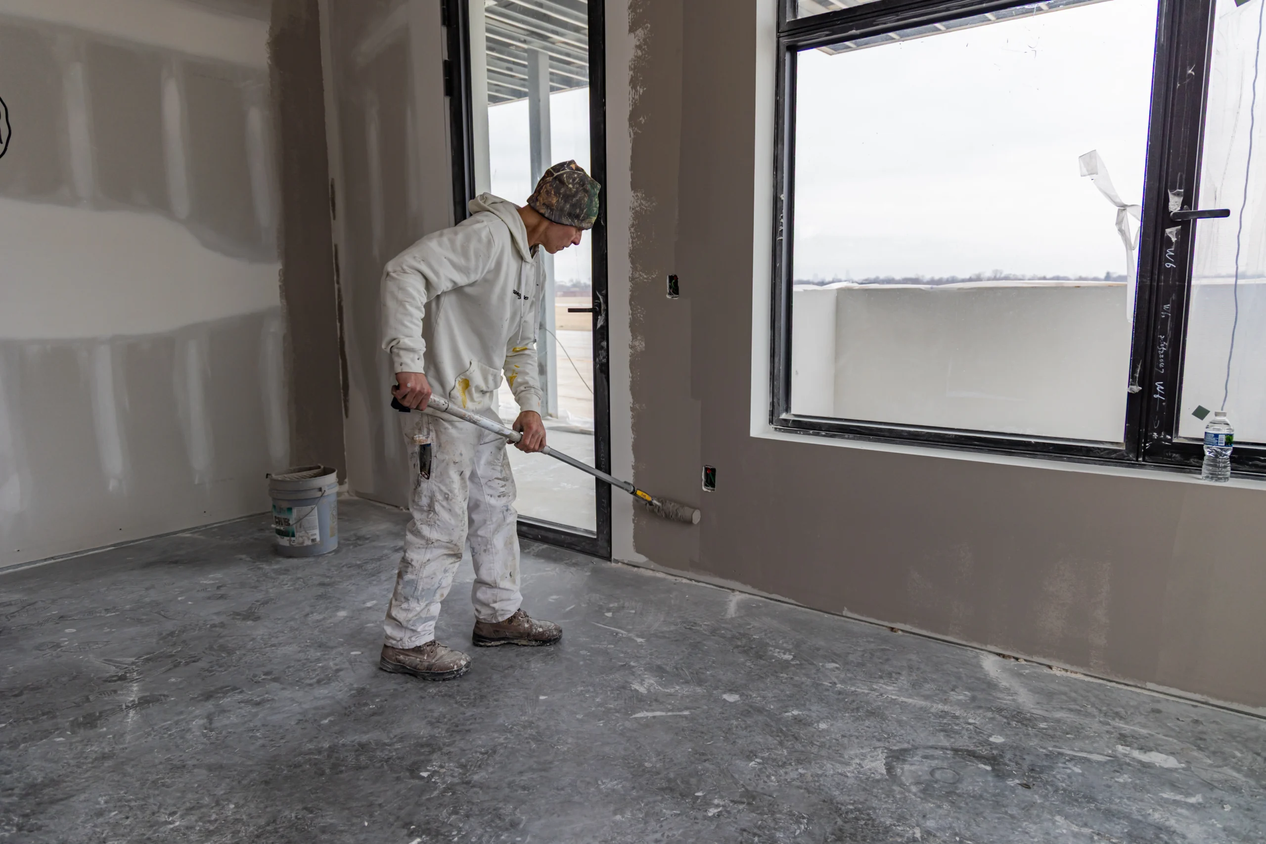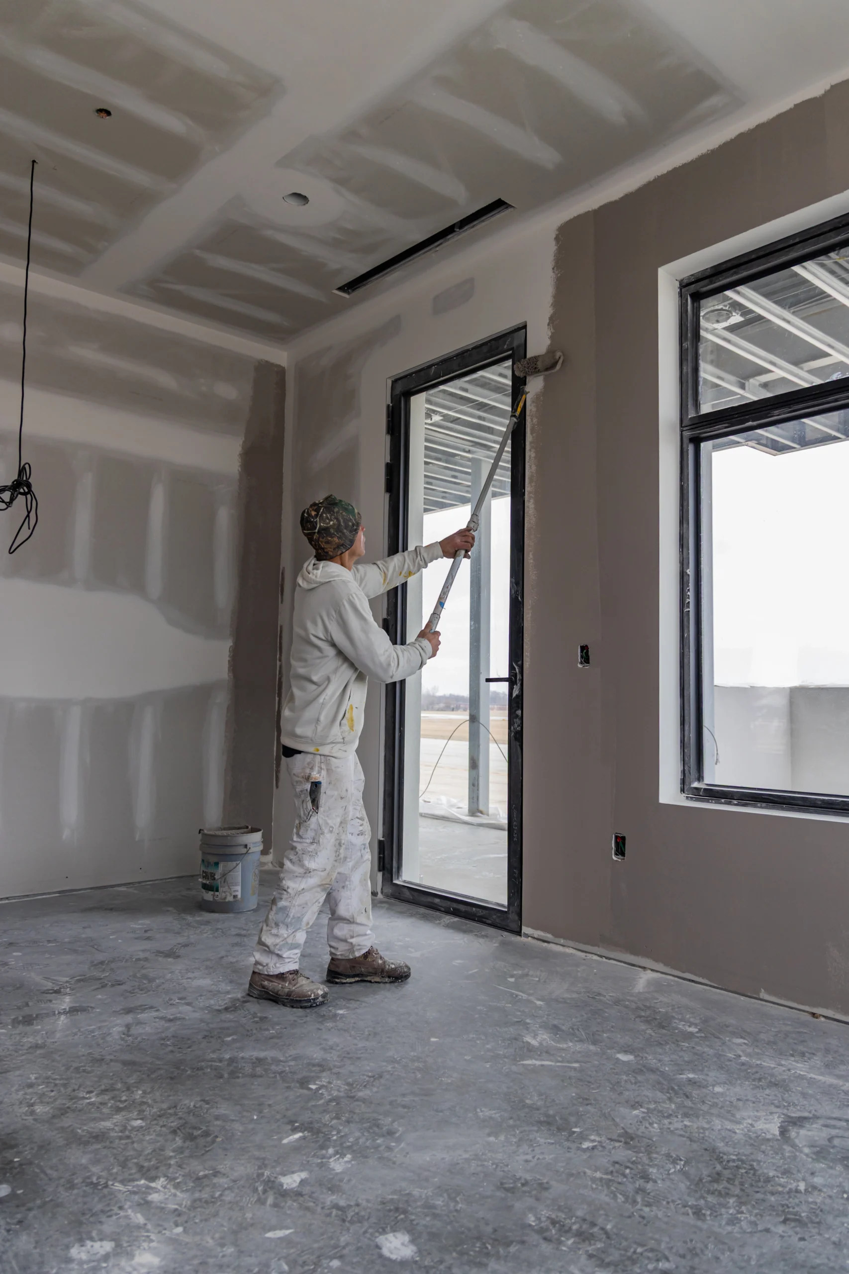 Once drywall installation and taping were completed, painters began rolling primer and finish coats across the walls and ceilings. This process transforms the interior space from a construction environment into a clean and professional workspace.