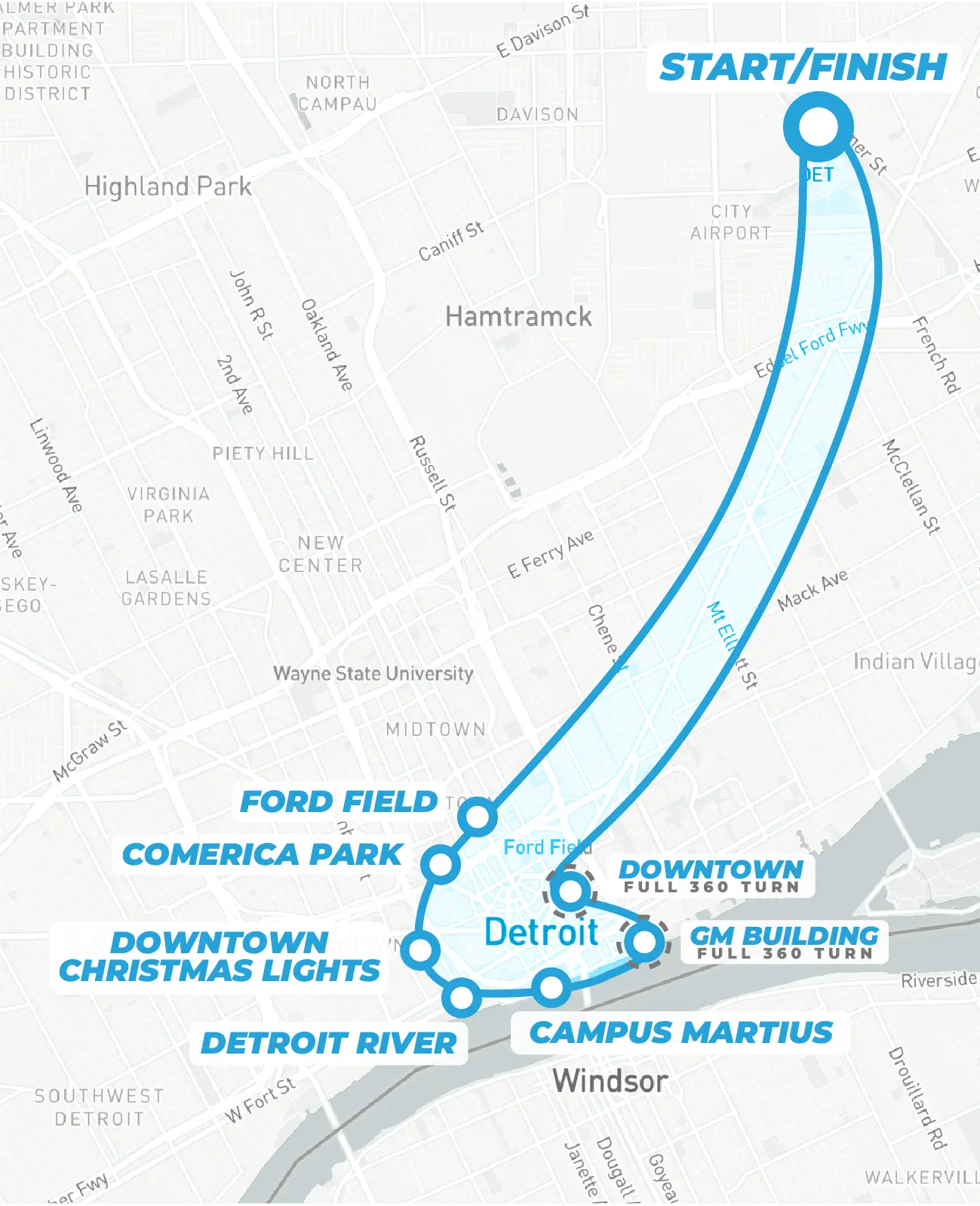 All flight paths are subject to change due to FAA Regulations, weather, or other reasons deemed necessary by MyFlight Tours. Please be aware that “GAME DAY ROUTES” will be in effect during all Detroit Tigers and Detroit Lions home games.